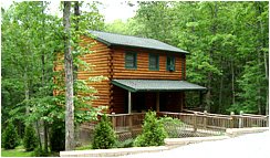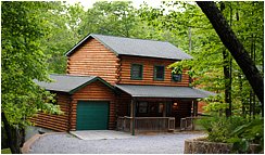 Conventional-style log cabin, homey and appealing, with two bedrooms, two baths, living room, dining area and kitchen; stone wood-burning fireplace, central A/C-heat.